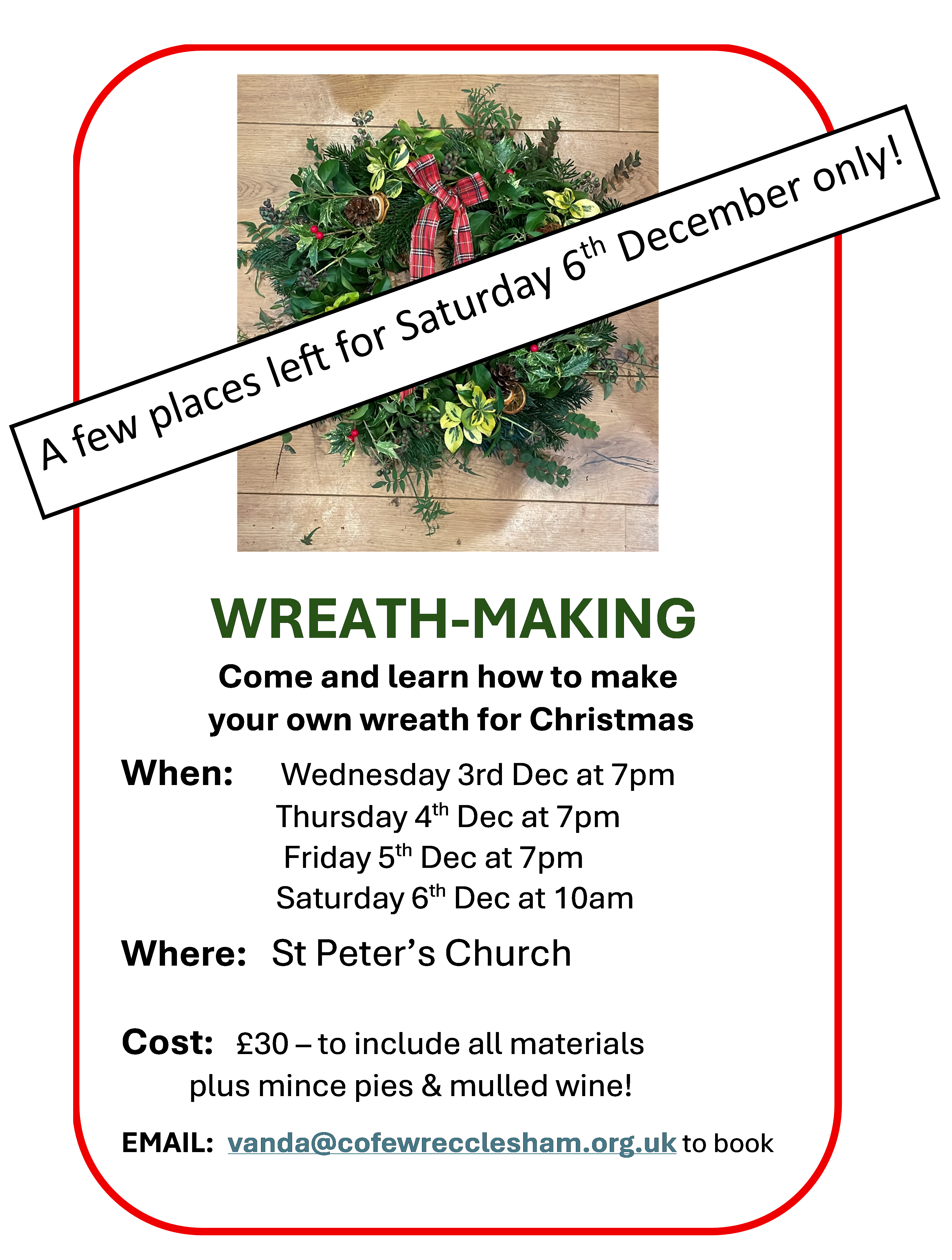St Peter’s church stands at the heart of Wrecclesham offering in Christ’s name a warm welcome, faithful witness and loving service.